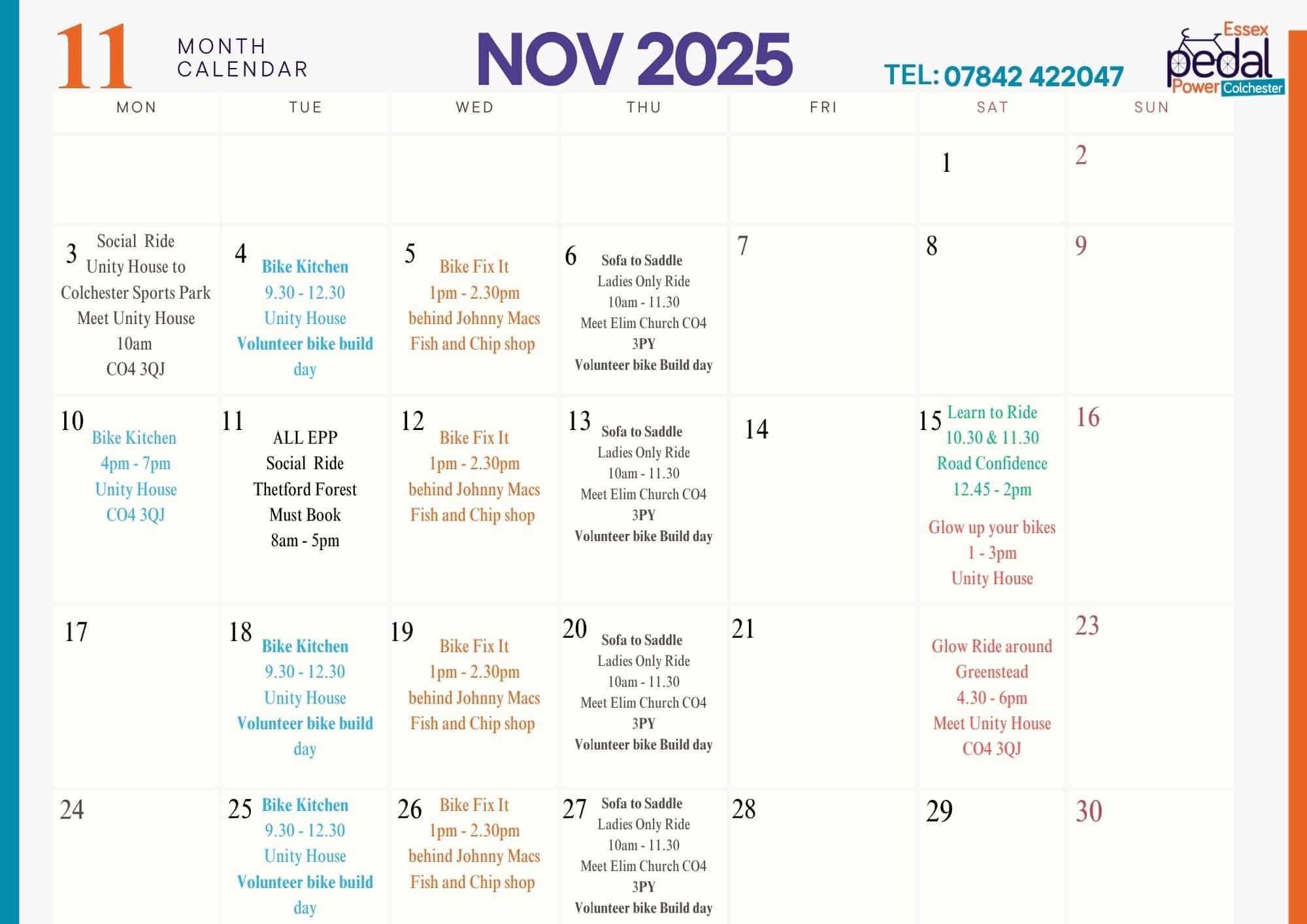 Essex Pedal Power Colchester launched in Greenstead in May 2023, with funding to give away over 800 free high-quality bikes to residents, along with a helmet, lock, pump, and lights. Essex Pedal Power has since broadened its scope, with further funding we have now been able to assist residents in neighbouring wards as well as buy a further 160 bikes, 20 child seats and 50 pannier racks. Whilst we still have bikes to giveaway we are in the process of transitioning from a free bicycle scheme to a community cycling engagement programme. Eligible Residents in Greenstead and surrounding wards can benefit from a range of cycling opportunities with Essex Pedal Power – including access to free cycle training, bike maintenance sessions, bike repairs and the opportunity to take part in social bike rides.